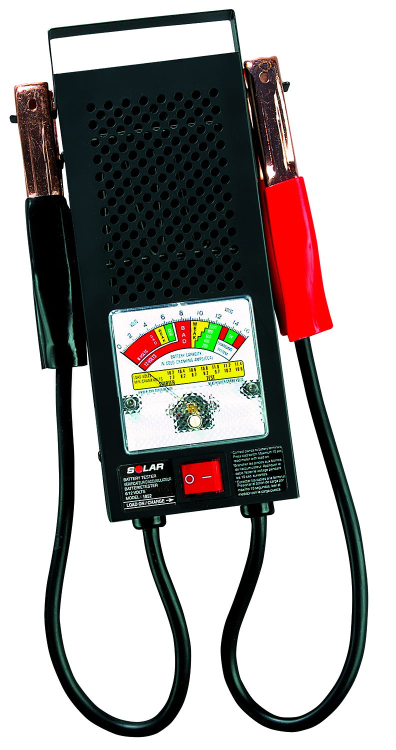 | Features | ,For 6 and 12 Volt batteries ,100 Amp load ,Tests batteries to 1000 Cold Cranking Amps ,Color-coded full-size meter ,1 year limited warranty |